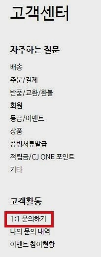 왼쪽에 보시면 이러한식으로 고객센터 메뉴가 있기도 한데 일대일 문의하기를 하실 수도 있습니다.