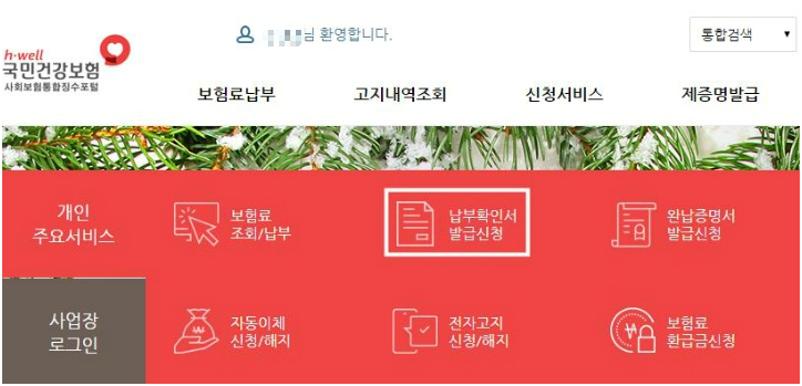 개인인증을 위해 공인인증서가 필요해요. 사이트로 접속하고 개인인증을 선택하면 공인인증서 로그인 화면이 뜹니다. 로그인 후, '납부확인서 발급 신청' 메뉴를 클릭해주세요. 건강보험과 연금보험 중에서 확인서를 발급할 수 있어요.