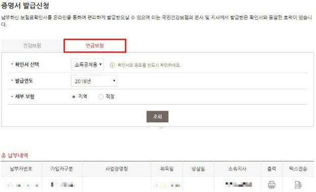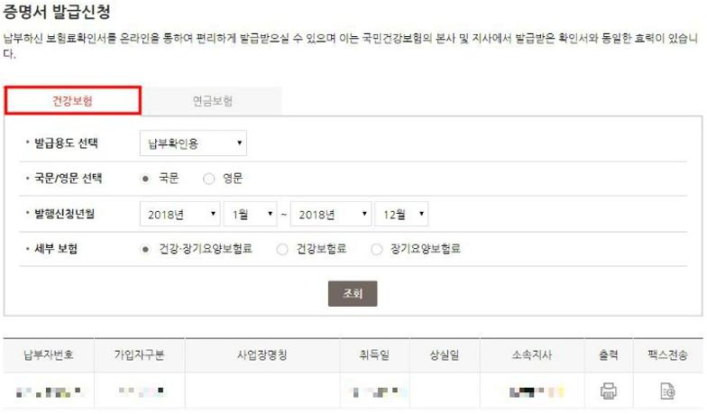건강보험 확인서를 발급하려면, 건강보험 탭을 클릭하고 발급연도를 입력한 후, 조회 버튼을 누르면 됩니다. 연금보험 확인서를 발급하려면, 연금보험 탭을 클릭하고 발급연도를 입력한 후, 조회 버튼을 누르면 됩니다.