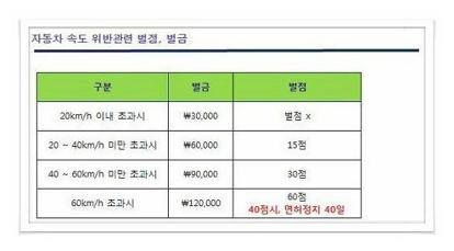 끝으로, 참고용으로 벌점과 법칙금 액수를 확인할 수 있는 표도 준비했습니다! 이렇게 과속카메라 단속조회를 간단히 서비스를 이용해 볼 수 있습니다. 다들 운전조심하세요!